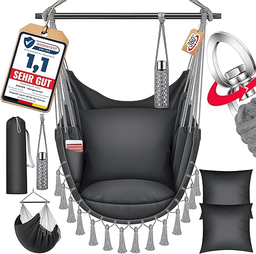 Zusammenfassend bietet der Juskys Hängesessel Aria eine perfekte Kombination aus Stil, Komfort und Funktionalität. Ob für ein gemütliches Lesevergnügen oder einen entspannenden Rückzugsort im Freien – dieser Hängesessel wird schnell zum neuen Lieblingsplatz in Ihrem Zuhause.
