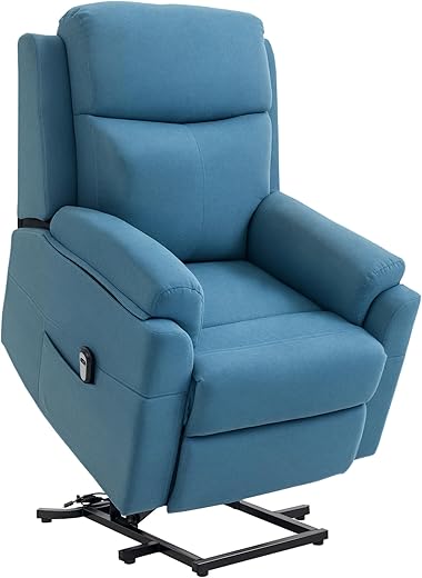 HOMCOM elektrischer Aufstehsessel Sessel mit Aufstehhilfe für Senior Relaxsessel TV Sessel mit schlaffunktion und aufstehhilfe Fernsehsessel Liegefunktion Leinen-Touch Blau 83 x…