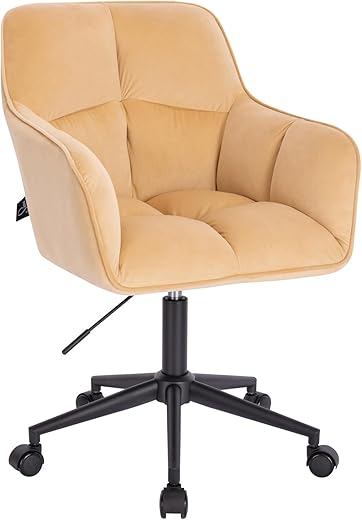 - Breitere Sitzfläche und Rückenlehne, mit samtstoff bezogen, hautfreundlich und atmungsaktiv, gefüllt mit hochelastischem Schaumstoff für angenehmes SitzenGeschwungene Rückenlehne aus Muschelimitat und U-förmiges Kissen bieten starken Halt und reduzieren Druck; stabiler, schwarz lackierter, kreuzförmiger Sockel mit rutschfesten FüßenSchlichtes, modisches Design, armloser Stuhl, lässt sich leicht mit jeder Dekoration kombinieren, ideal für Büro, Erholungzimmer und mehrHöhenverstellbar von 41 cm bis 53 cm,…