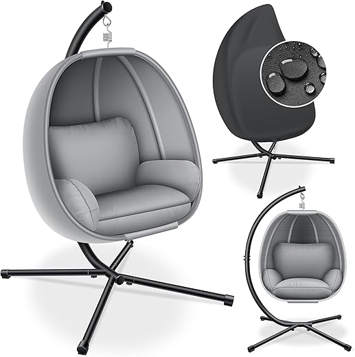 KESSER® Luxe Hängesessel mit Gestell + weicher Sitzkissen, Seitenpolsterung, Sitz- und Rückenkissen Hängekorb Indoor & Outdoor, Garten Schaukel Korb Hängestuhl Stabiler…