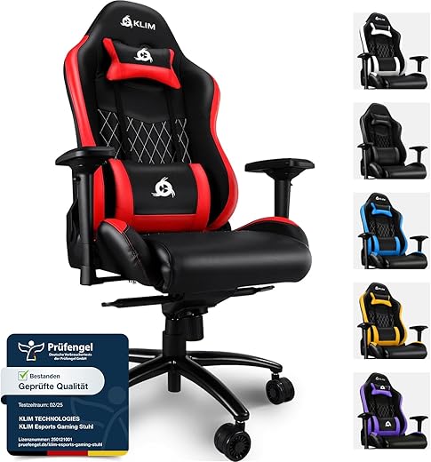 - Tragkraft bis zu 150 kg mit hochdichtem Schaumstoff gepolstert, getestet nach SGS ANSI/BIFMA X5.1-2017Verstellbare Rückenlehne (90° bis 135°) und Teleskop-Fußstütze für optimalen KomfortVerstellbare Kopfstütze und Lendenwirbelstütze sowie komfortabel geformte Armlehnen zur UnterstützungSitzfläche mit 54 x 51 cm Größe, gepolstert mit hochdichtem Schaum, PU-Beschichtung für leichte Reinigung und reißfestes Tuch an den SeitenVielseitig einsetzbar für Gaming und Arbeit, dank komfortabeler Gestaltung…