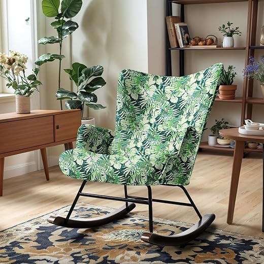 - Hochwertiger Schaukelstuhl für Erwachsene mit hochdichtem Schwamm für elastisches und weiches Sitzerlebnis; Stoff bietet super Atmungsaktivität, hautfreundliche Haptik und optimalen KomfortErgonomisch geformt mit Flügelrücken und -arm für besten Sitzkomfort und bequeme Haltung; ermöglicht sanftes Schwingen zur EntspannungGefertigt aus hochwertigem Eisen und Massivholz für große Stabilität und Tragfähigkeit von bis zu 120 kg; Massivholzsockel ist verschleißfest und robustVielseitige Nutzung im Wohnzimmer,…