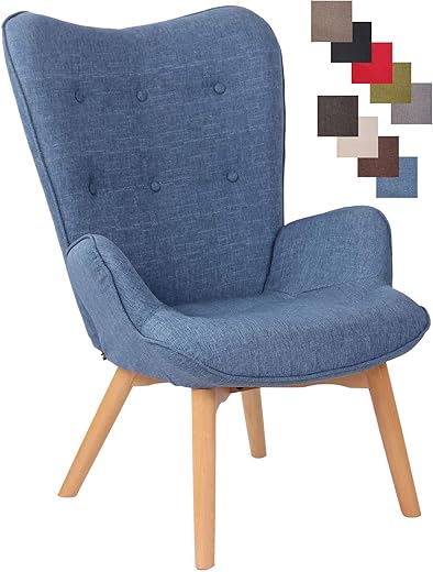 Mingone Sessel Wohnzimmer Design Loungesessel Cocktailsessel Polstersessel Einzelsofa Vintage Retro ohne Hocker Einzelsessel mit Leinenstoff,60 x 72 x 72cm (Blau)